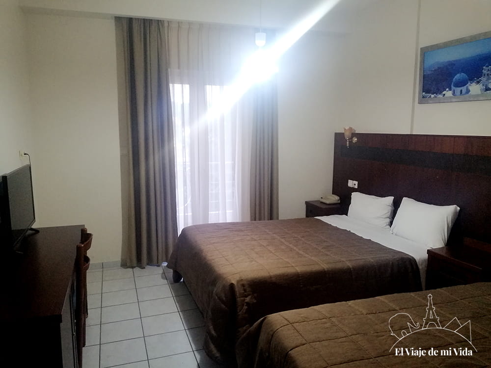En mi caso, con la excursión que contraté, nos alojaremos en el hotel Orfeas que está tirando a las afueras de la pequeña ciudad. Es un alojamiento sencillo, pero muy correcto y perfecto para descansar ya que está alejado a las calles principales llenas de bares y restaurantes.