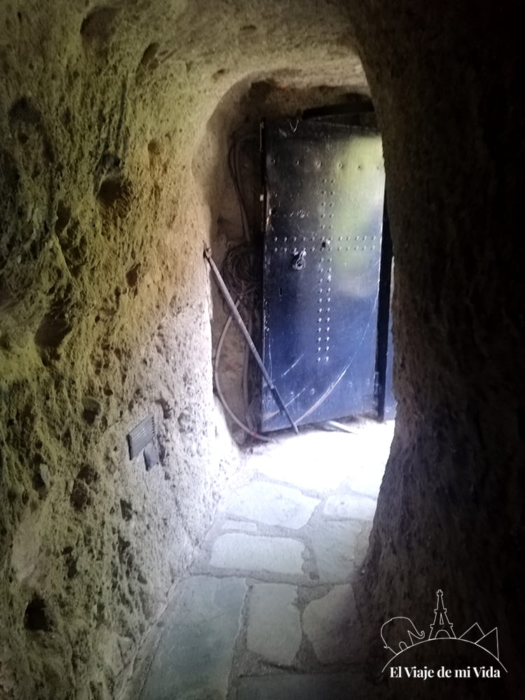 Se accede a través de un puente de piedra y una escalera tallada en la roca.